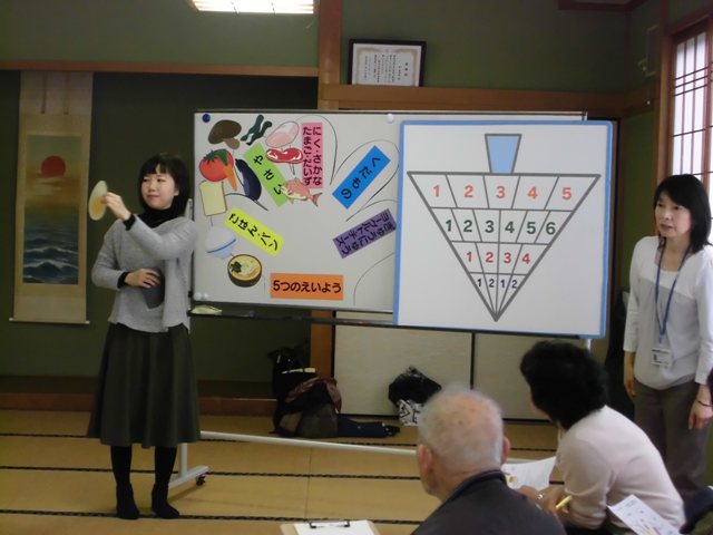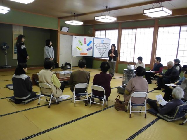 高齢者の食育を研究テーマにしていた学生も落ち着いて食育を担当することができ、2年間の成長が窺われました。受講して頂いた皆さま方から「食は大事。良いお話が聞けて良かった!また必ず来てほしい」と有難いお言葉を頂きました。